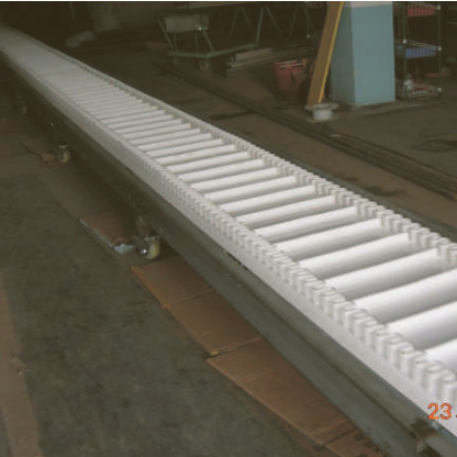 1、皮帶輸送機機頭、機尾處底板松軟時采用長2m、寬1.5m、深1m的水泥基礎固定,底腳螺栓(Φ20mm)埋入水泥基礎不少于700mm。機頭、機尾處底板堅硬時,采用地錨固定(錨固力不小于50KN),地錨螺栓(Φ20mm)用水泥澆鑄埋入底板不少于1400mm。 2、安裝皮帶輸送機必須做到機頭、機尾固定牢固,運行平穩。底皮帶距底板不小于400mm,機尾滾筒最低點距底板不得小于150